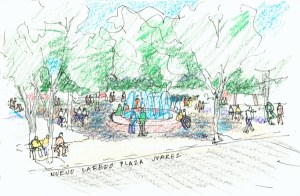 Customs at the Mexican side of the bridge seemed casual. Leaving the bridge we came to Plaza Juarez, the twin, you might say, of San Agustin Plaza in Laredo. In contrast to the stately yet virtually empty plaza in Laredo, though, the plaza in Nuevo Laredo was bustling. People were coming and going in the shadow of live oak trees while older people sat on benches, children chased around the plaza, and teenagers watched each other.